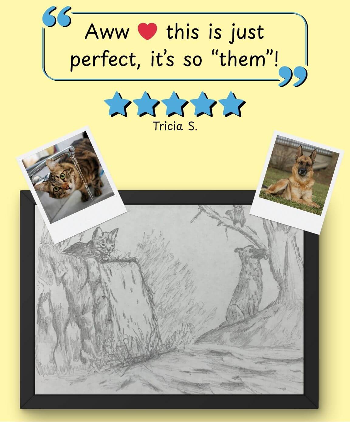 After you order, your artist will reach out and help brainstorm the perfect doodle idea based on your pet’s personality, photos, and any fun details you share.